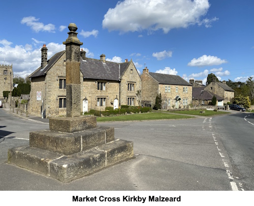 To view route as a dynamic Ordnance Survey map click here. Introduction: This is an easy circular walk through pleasant North Yorkshire countryside, starting at Kirkby Malzeard and passing through the pleasant hamlet of Laverton and Grewelthorpe village with its pretty duck pond. Kirkby Malzeard is officially a ‘town’ having been granted the right to hold a market by Edward I in 1307. Its name comes from two sources; Chirchebi, as it appears on the Domesday Book (meaning ‘church village’), which became Kirkby and Malzeard (meaning ‘bad clearing’ in Norman French. It owes its origins to farming and animals were brought to the market for sale. There is a pinfold where they were corralled. At one time it had a castle but this seems to have been demolished in 1173/4. There has been a church ay Kirkby Malzeard (St. Andrews) since around 1150 with subsequent additions. It suffered a bad fire in 1908 but was restored. The school building was built by subscription in 1862 and is still in use. You will pass it, opposite the church. There