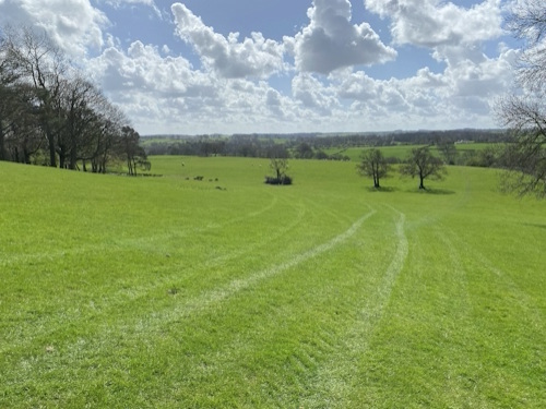 bridleway fingerpost. At a ‘T’ junction with another broad track, turn