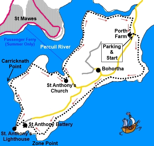 park at Porth Farm. To get there, turn off the A3078 at Trewithian