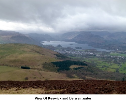 views to Keswick and Derwent Water to the left and Bassentwaite Lake to the