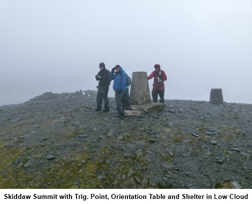 the top at NY 260286. This is at the next cairn after a (poor) shelter