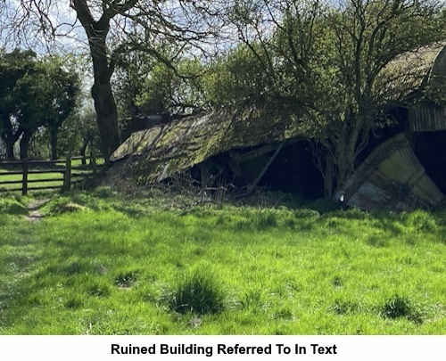 Walk through the village and as you get to where the national speed limit signs are, turn right up some steps. Enter a field and head for the diagonally opposite corner, where you cross a stile next to a ruined building.